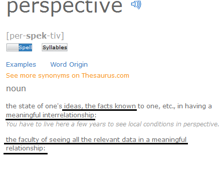 Perspective is important; it allows connections to be made. Without a frame of reference a dot will be a dot, but with perspective meaningful interrelationships come into focus and a more rich tapestry seen.