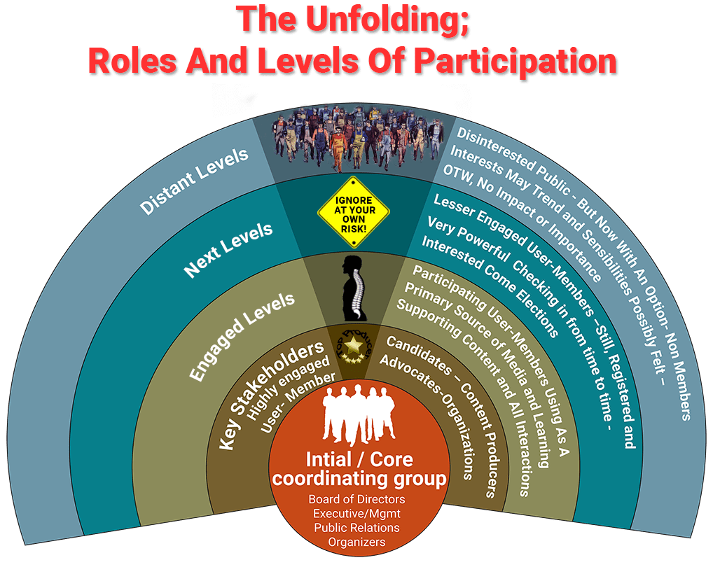 The "masses" have never been deliberately/deliberatively decisive in any society’s political direction; that is simply not possible. They can only react; when it’s already too late. Messy! It is therefore the job of the capable people to ensure it doesn’t come to that. Sure, it would be great for everyone to care - and be capable – but it is absolutely unnecessary to stable, meaningful change for that to be the case. Since only small percentages of the populations will seek "active engagement", and since only such small populations are necessary to affect our all-powerful ballot access/nominating process, by simply using the Citizens Access Network, things change; a lot! This means relatively small numbers of committed people who are already participating, or interested in using what freedoms we have left wisely, can be decisive. Consequently, there should be no concerns about how realistic or pragmatic this approach is because it not a quantity game; it’s a quality game and that starts with just getting those of us already "there" organized and capable of to action! No utopian movements born of "unity" or "the crowd" are necessary. The qualitative participation of existing populations of concerned citizens - or just incremental increases of such participation – will be more than enough to allow big things to happen. This important truth is fully documented throughout these pages. We must never forget that past and present, the entirety of our electoral process are essentially conducted in a vacuum. As there is no central home to which we can go and manage these affairs, we flail about disconnectedly. This leaves us to the forces of the money-media-election complex and our own inertia; ensuring failure. Therefore, the media-filtering- power-proximity, and competition inciting elements being proposed here begin by simply getting these activities under one specially purposed roof that will direct sunlight. Unprecedented, that alone will change everything. Moreover, once people with lesser degrees of committed interest see the more committed people with higher degrees succeeding, more will come to register - and so strengthen the networks power dynamics - as well as participate in the greater processes it supports. Bottom line; if just enough of us, the "capable people" - who are already concerned and engaged - gather and work together as proposed, the buck will stop with us. What more can a free people ask?